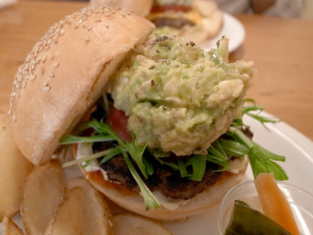 ここのアボカドバーガーはカットしたアボカドではなくワカモレタイプ。そのワカレモがとにかくボリュームたっぷり。アボ好きとしては嬉しい限りの超特盛り。ワカモレはたぶんあまり多くは作り置きせず必要な量だけその都度仕込んでいるんだろうなぁと想像できる味。とにかく美味しい。