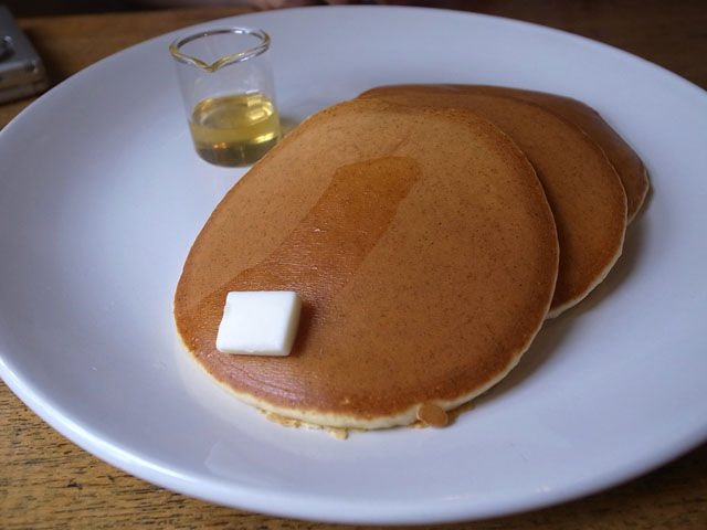 ヨメさんは「マドのホットケーキ」をオーダー。丁寧に焼かれたホットケーキは見るからに美味しそう。