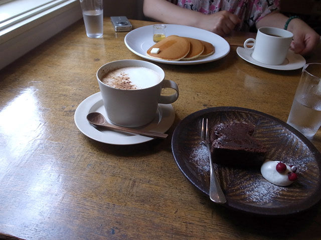 ボクはラムレーズンガトーショコラとカプチーノをオーダー。