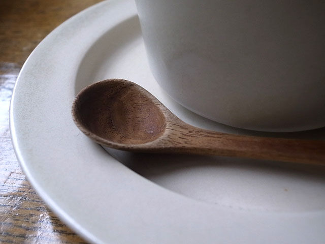 カップ&ソーサーに添えられた木製のスプーンがかわいい。