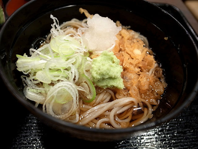 こちらにもカリカリに天かす。お汁はやや濃いめでボク好みではなかったけど冷水で絞められたお蕎麦は美味でした。