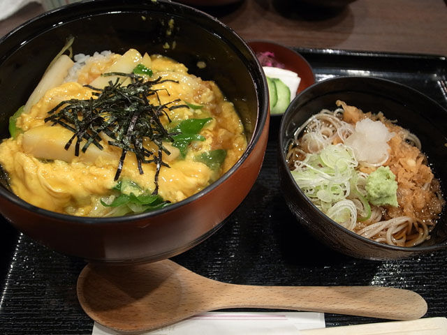 丼につくお吸い物は料金を追加することでわんこそばに変更できるとのことで冷たいわんこそばをセットに。