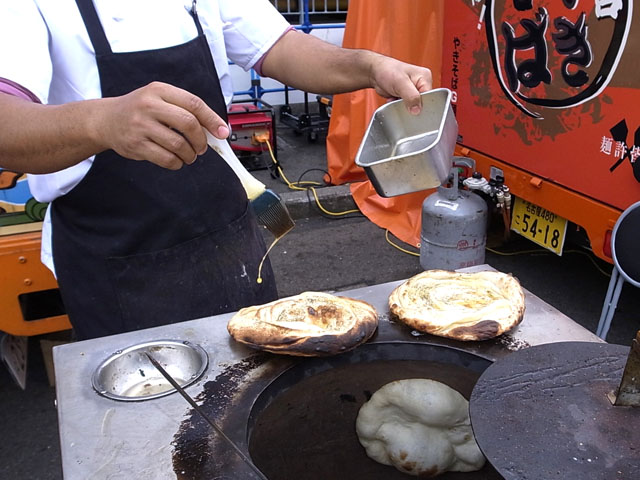 期待に胸を膨らませ一緒に買ったサモサをかじりながらプティナ・パラウタの焼き上がりを待つ。