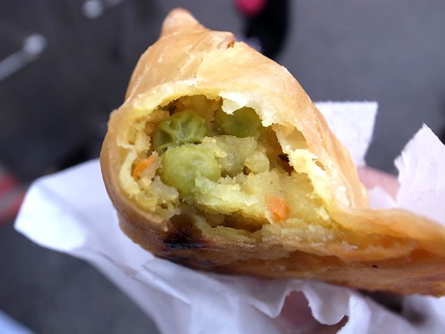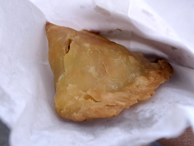 サモサの中身はやさしいカレー風味のジャガイモ。