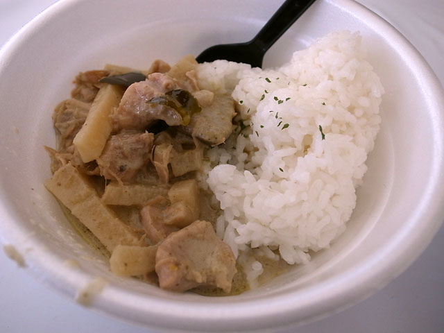 グリーンカレーの具はタケノコと鶏肉。わりと辛めなんだけど濃厚なココナッツミルクのおかげでマイルドな口当たり。