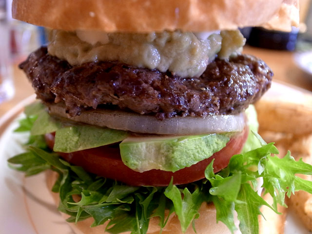 定番のアボカドバーガーではパティの上に乗せられるカットアボカドがパティの下に挟まれパティの上にはアボカドディップがどーんと盛られている。ボク的には見た目だけでテンションがあがってしまう超贅沢なバーガー。パティは粗挽きだが絶妙な密度で歯ごたえが良い。肉本来の旨味を噛みしめて味わえる。