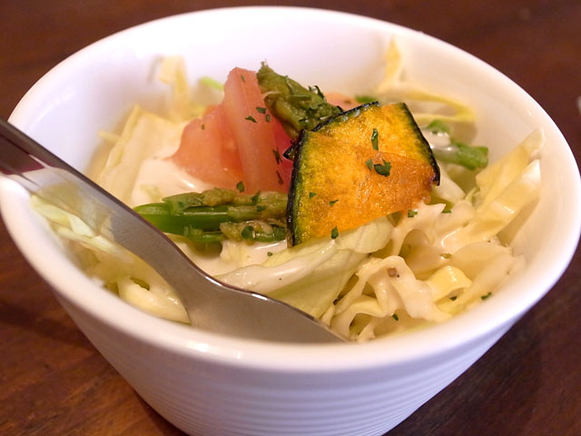 サラダはアスパラとグリルしたかぼちゃがいいアクセント。