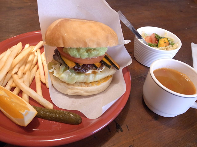 ランチメニューの黒板に書いてあった今日のおススメの中のひとつ「アボカドバーガーwithパンプキン」をオーダー。