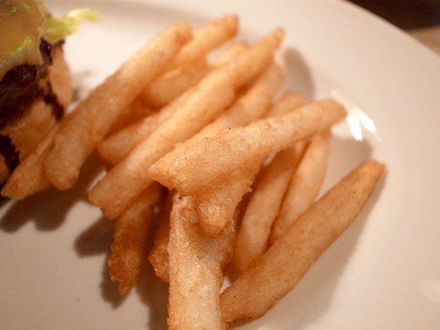 とろけたチェダーチーズの下のビーフパティはごつごつとした肉々しいタイプかと思いきや程よく肉汁も含んでいて美味しい。