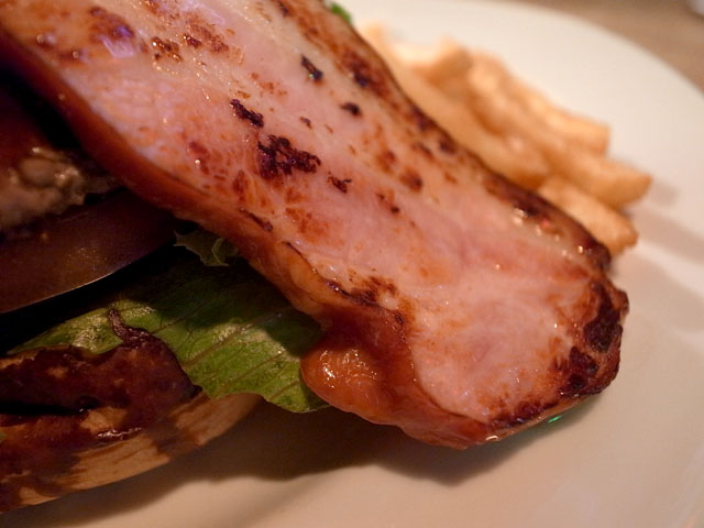 まず最初に目につくのは迫力抜群の巨大なベーコン。