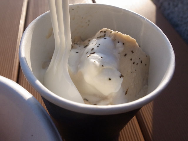 加賀棒茶プリンはホイップがトッピングされ上からは茶葉がパラパラ。甘さ控えめで茶葉特有の微かな苦味が心地よい。これ、美味しいなぁ〜、re:Liの店頭でも食べれるのかなぁ。