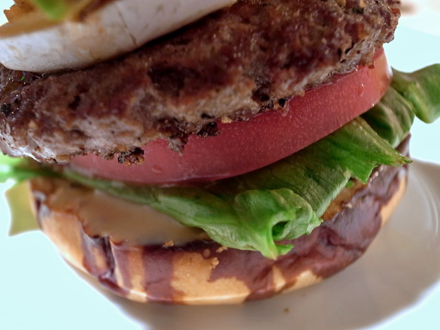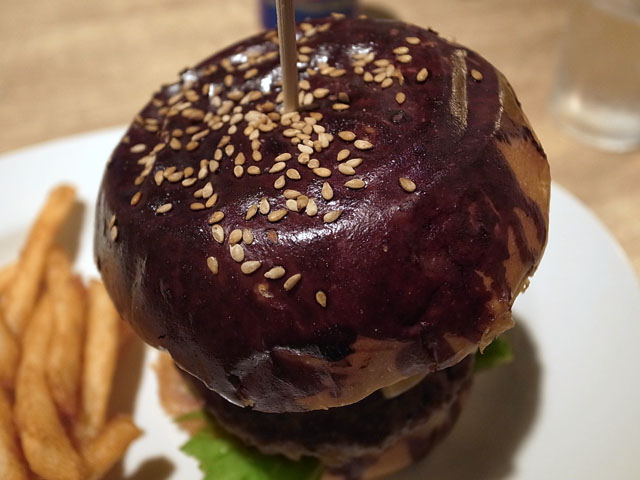 しばらくして運ばれてきたバーガーは見事な積み上がりっぷり。背の高いバーガーって食べる前からテンションが上がるよね。