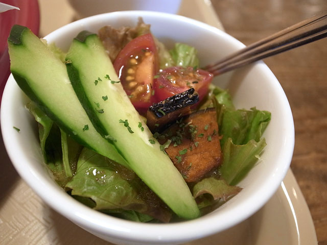ミニサラダにはかぼちゃ入り。初めてお邪魔したときに食べたアボカドwithパンプキンバーガーを思い出す。