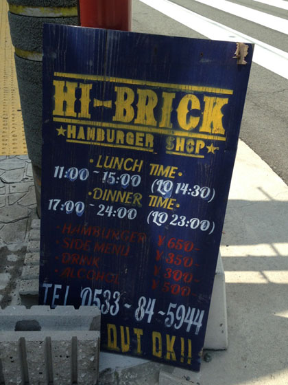 仕事で東三河方面へ行く用事があったのでついでに「東海ハンバーガースタンプラリー2014」参加のハンバーガーショップ「Hi-Brick」へ。