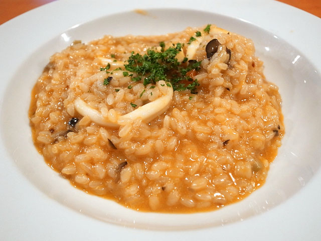 週替わりメニューの中からイカとオリーブのリゾットをたっぷりサラダの付いたBランチでオーダー。