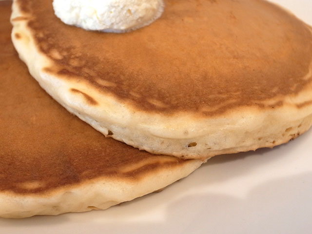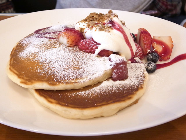 ボクはプレーンのパンケーキ。ヨメさんはストロベリーパンケーキをオーダー。
