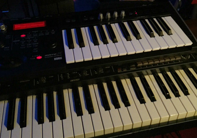 当日のボクのセットは下段がRoland VK-8(ver.2)、上段はKORG MicroXという構成。