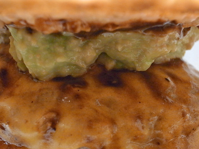 バンズ、見た目のインパクトは大きいがバーガーとしてかぶりついてみると他の具材とも喧嘩せずバランスが良い。