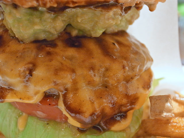 ポテトとドリンクの付いたEATチーズバーガーセットにワカモレをトッピング