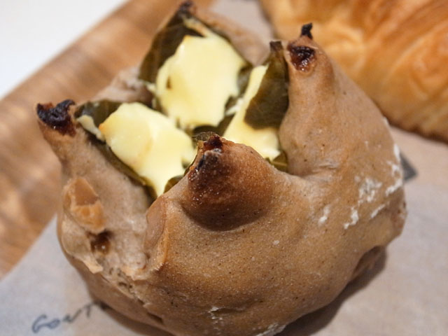 桜葉とクリームチーズのプチカンパーニュは生地にナッツがごろごろ練りこまれていてそれが食感のアクセントになっている。