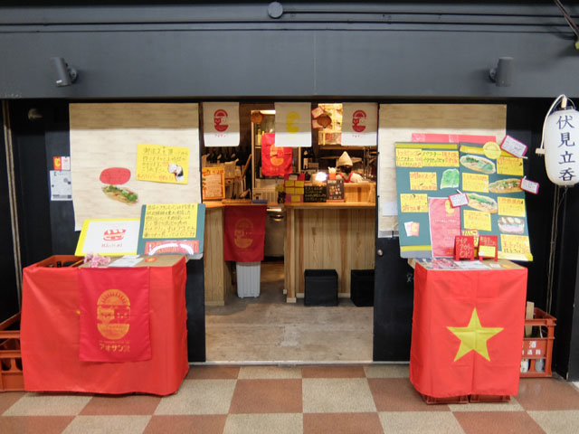 そんな伏見地下街の一角に今年新たにオープンしたのが「ベトナムサンドイッチ アオサンズ」広島出身の女性オーナーさんが「伏見立吞 おお島」の店舗を昼間のみ間借りして営業されている。