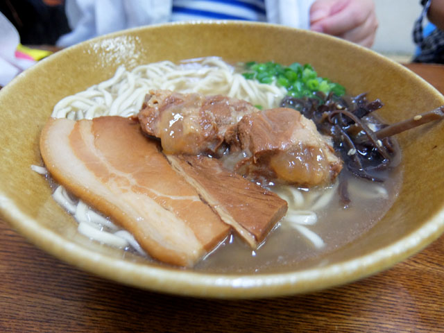ボクは「軟骨ソーキそば」をオーダーし息子とシェア。