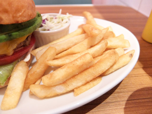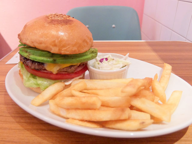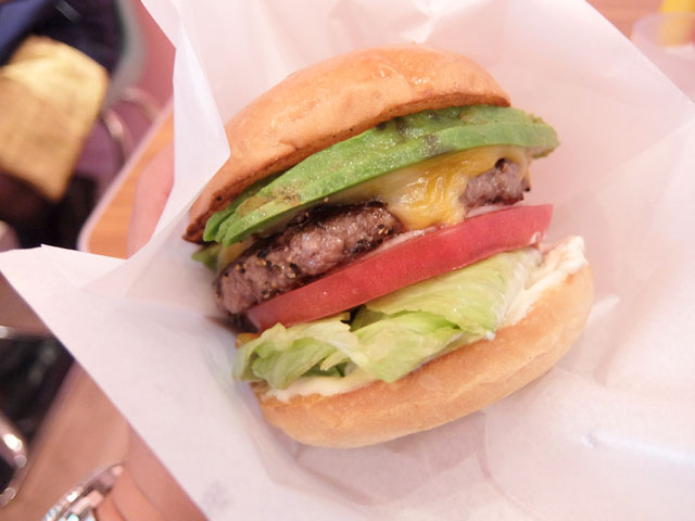 ミルクシェイクを飲んでいる間にお待ちかねのアボカドチーズバーガーが登場。