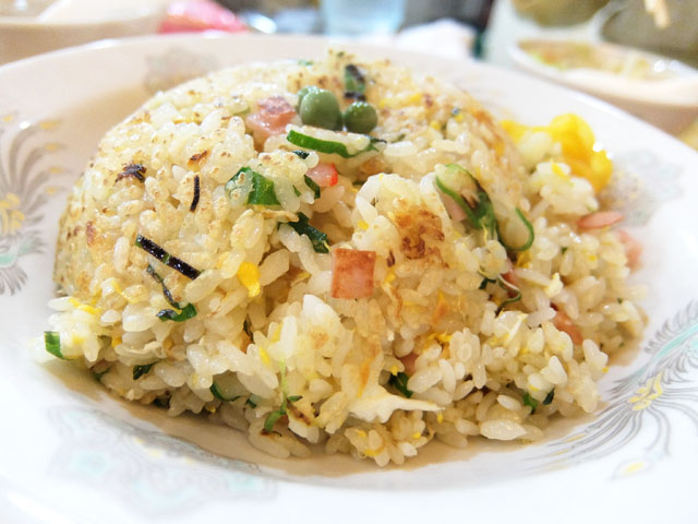 グリーンピースの乗ったどこか懐かしさを感じるチャーハン。このチャーハン好きなんだよなぁ。