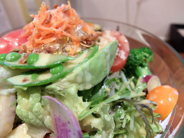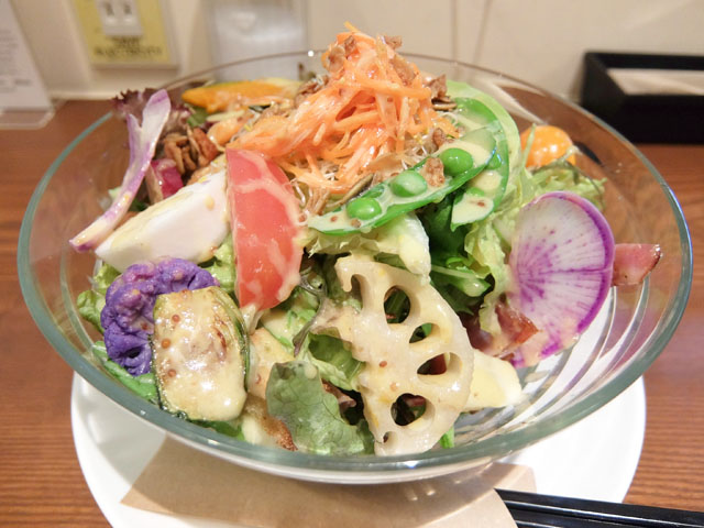 ボクのオーダーしたリンゴとベーコンのサラダボウル。ボリュームたっぷり。見た目もカラフルで美しいね。