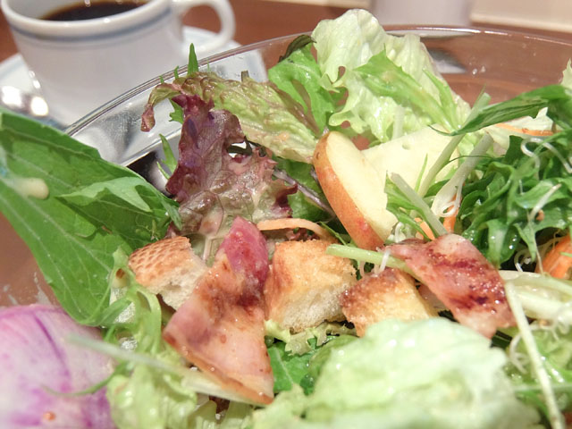 大き目なクルトンも入っていて食べ応え抜群。リンゴの甘酸っぱさとベーコンの塩っ気がいいアクセントになっていて大満足のサラダボウルでした。次回はこれにぜひアボカドをトッピングせねば!