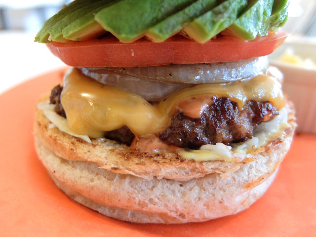 オーダーはアボカドチーズバーガーとアイスコーヒー。