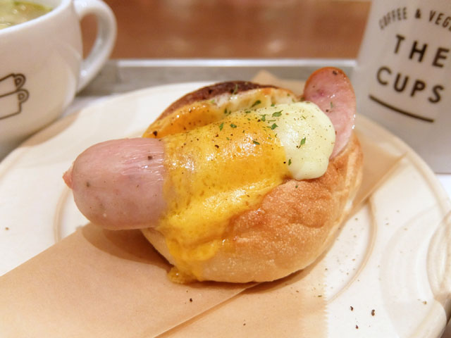 オーダーはホットドックセット。ホットドックに2種から選べるスープ、日替わりのデリ、ドリンクがついてくる。