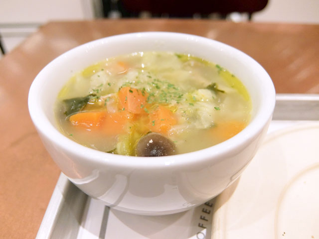 この日のスープはチキンのポトフorかぼちゃのポタージュ。ボクはチキンのポトフをチョイス。