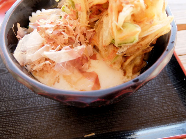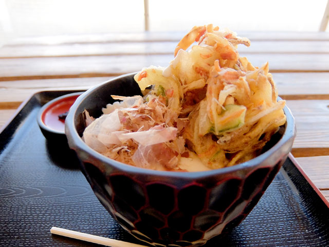 予想以上の大きさの野菜かき揚げにテンションがあがる。