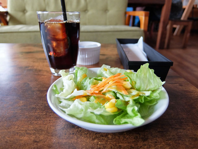 ランチタイムはポテトとサラダ、ドリンクが付くとのことでまずはサラダとドリンク。