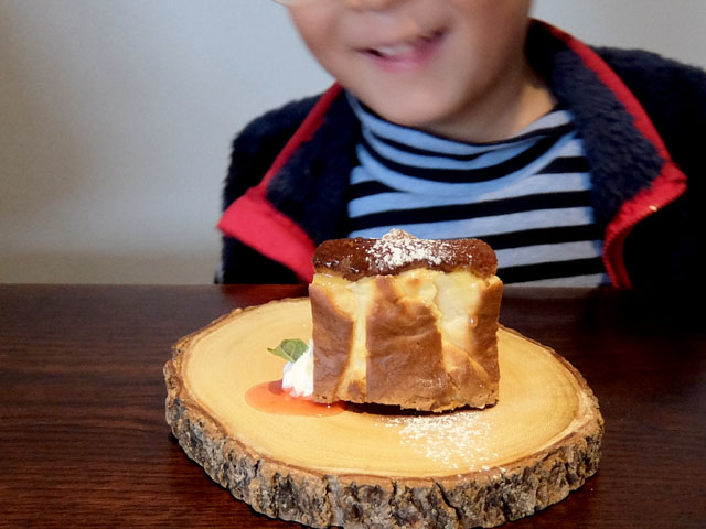 息子は大好物のベイクドチーズケーキ。全体像を撮る間もなく息子の口の中へ(笑)