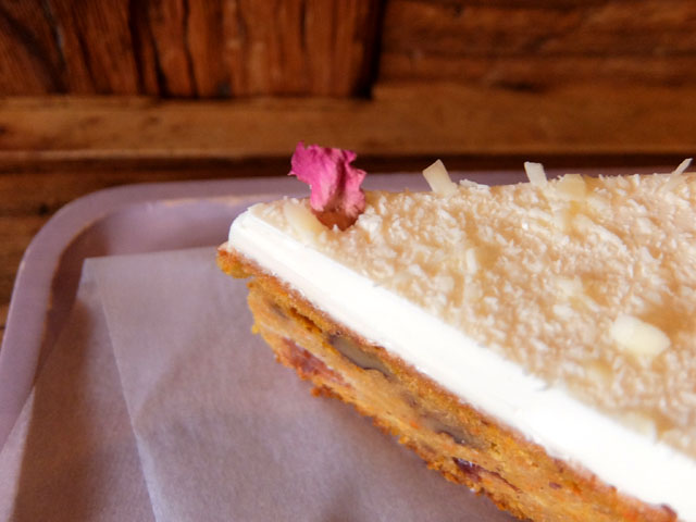 ボクはそのかわいいルックスに惹かれてキャロットケーキをいただく。