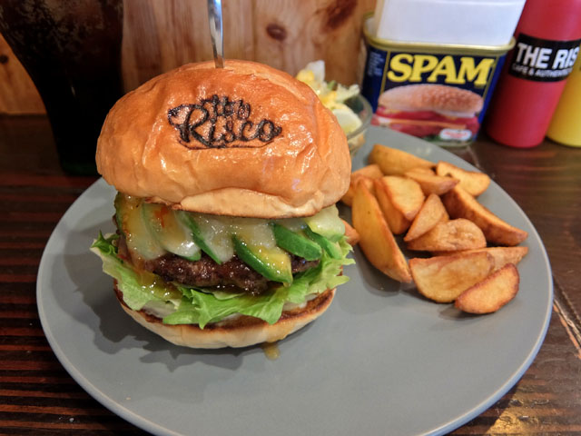 THE RISCOといえばオージービーフと飛騨豚を配合したオリジナルパティ。豚肉に好相性な果物と言えばパイナップル!ということで大好きなアボカドとパイナップルが同時に楽しめるハワイアンバーガーをオーダー。