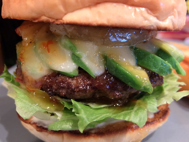 味わい深い合挽きオリジナルパティにアボカド、モッツァレラチーズ、パイナップル、そして全体をまとめるのはスイートチリソース。個人的にパイナップルとスイートチリソースの組み合わせって好きなんだよね。