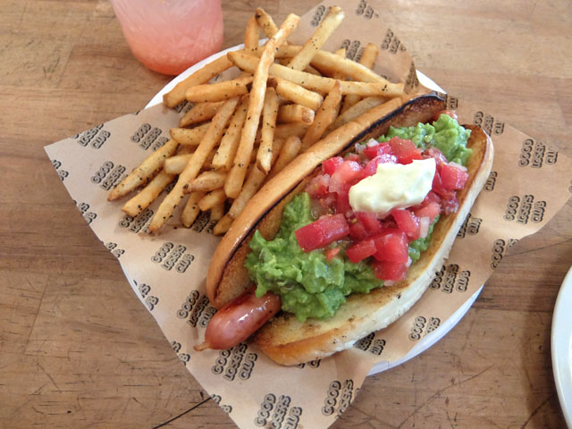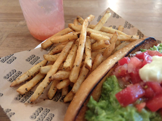 ホットドッグからこぼれ落ちたワカモレサルサはこのポテトにディップしていただきます。