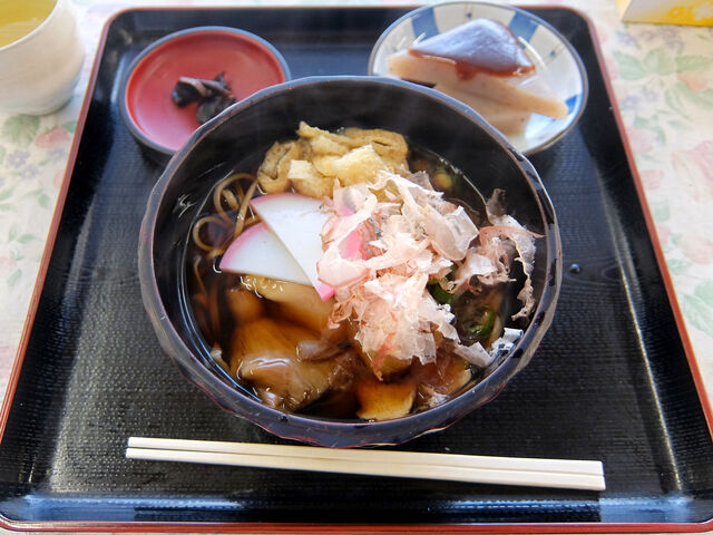 オーダーしたのはきのこそばと設楽こんにゃくの田楽。