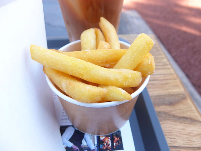 サイドのフライドポテトは桑名市の油屋さん「油清(あぶせい)」さんの米油で揚げているとのこと。これもウマいわ。