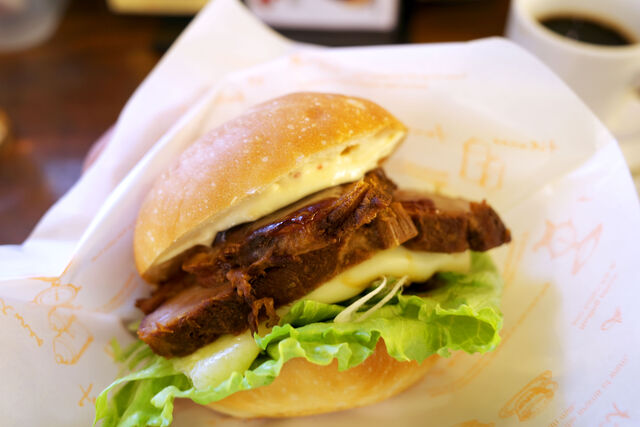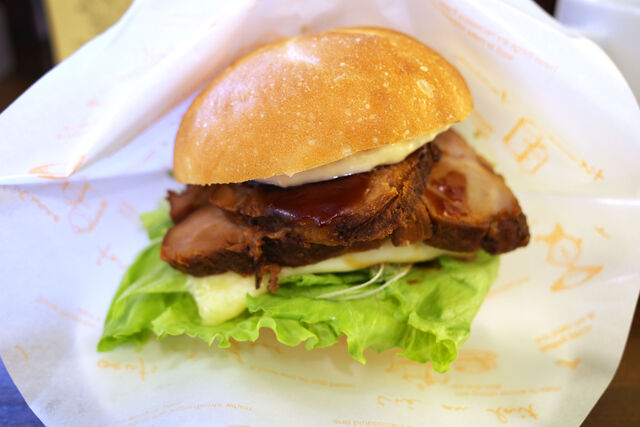 厚めに切ったチャーシューがたっぷり挟まれていて食べ応え抜群。