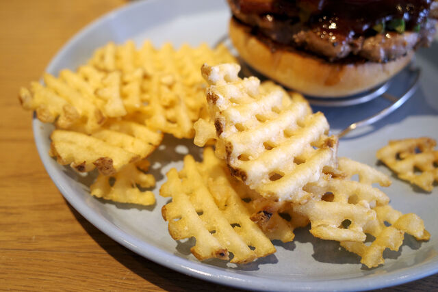 しばらくしてABCバーガー登場。ソースはBBQソースにしました。