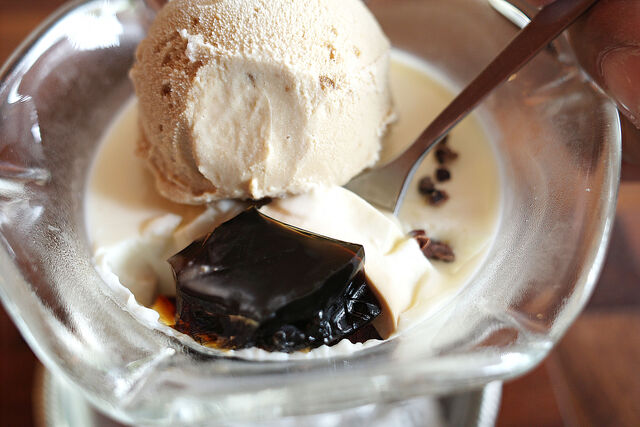 ハンドドリップで淹れたコーヒーのコーヒーゼリーとブラマンジェの2層仕立て。