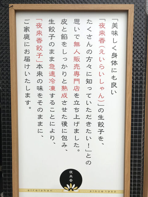 マイフェイバリット餃子屋さん、栄の「夜来香(エイライシャン)」が御器所に冷凍餃子の無人販売店をオープンさせたのを思い出し帰りに寄ってみることに。