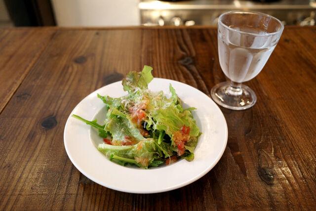 まずはサラダ。食べる前の見た目からしてウマそう。実際にも美味しいサラダでした。