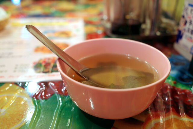 まずはいつものランチスープ。セロリや高菜や色々なタイハーブが入っていて美味しいんだ。