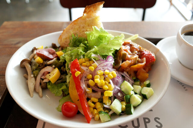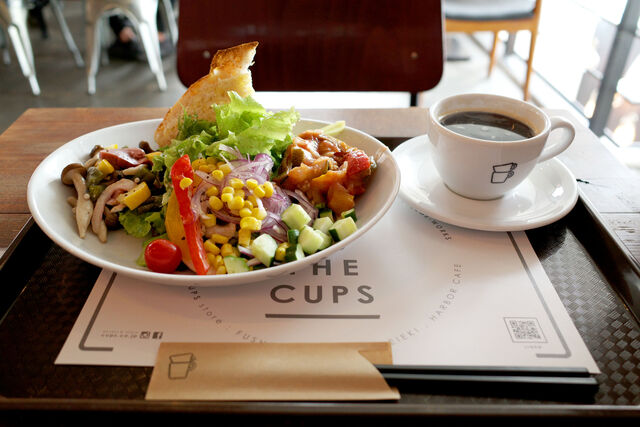 8月最終日のランチ。この日はお野菜(0831)の日ってことで伏見のコーヒースタンド「THE CUPS(ザ カップス)」で野菜モリモリのランチをいただく。