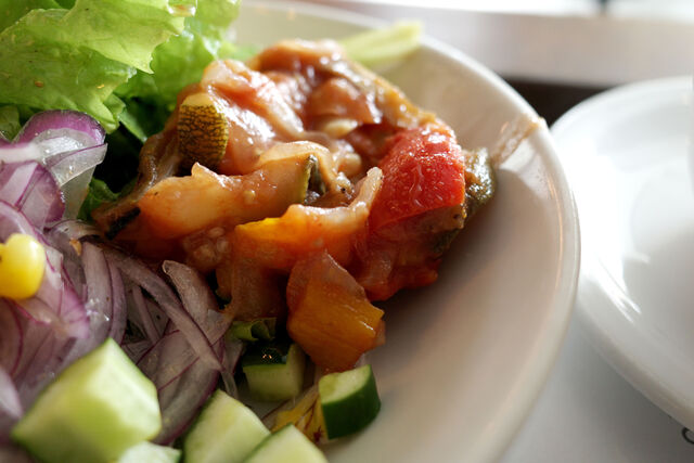 選べるデリは鴨とオクラのイタリアンマリネとカポナータをチョイス